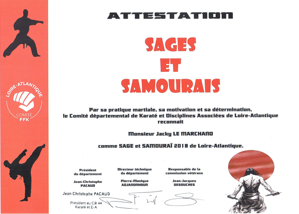 Décernée aux Karatékas méritants de plus de 65 ans